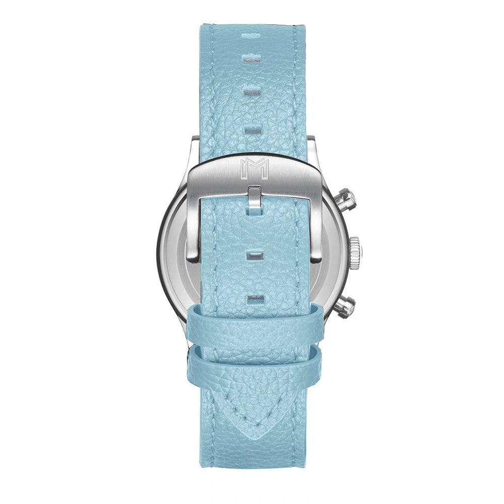 Semi Brushed Stainless Steel / Blue Leather