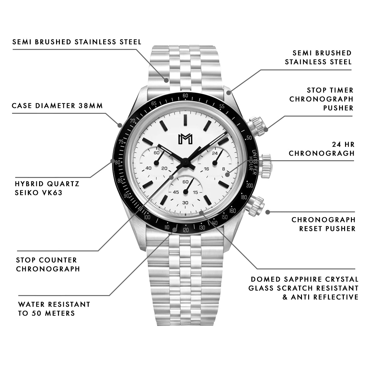 Semi Brushed Stainless Steel / Leather