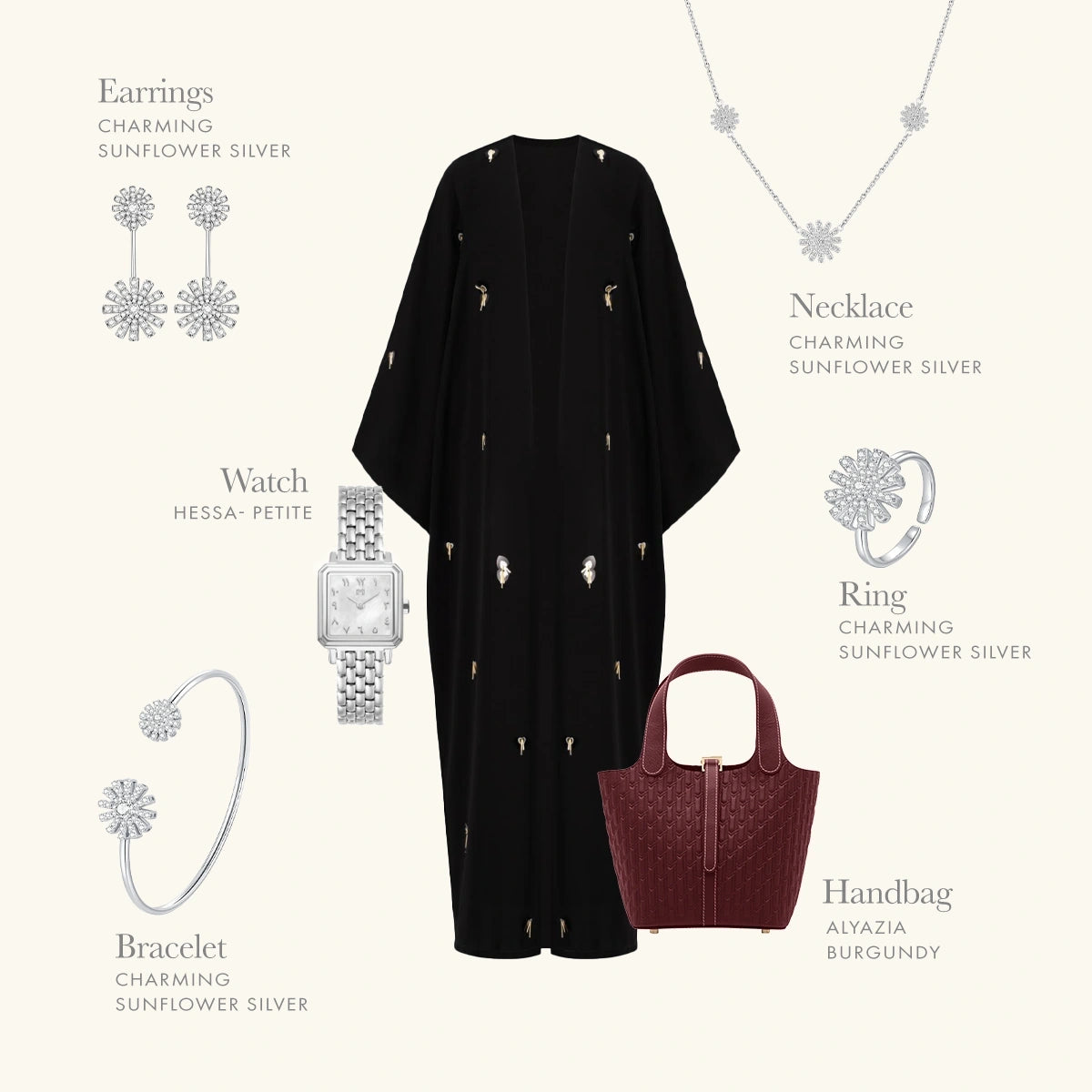 تقدم مجموعة تشارمنق سن فلاور تصميمًا مبهجًا مستوحى من الطبيعة، بتفاصيل تشبه بتلات الورد المشعة وبكريستالات متلألئة. تصميم جريء ومشرق يضفي جمالا على لحظاتك اليومية، ويجعل منها هدية لا تنسى.