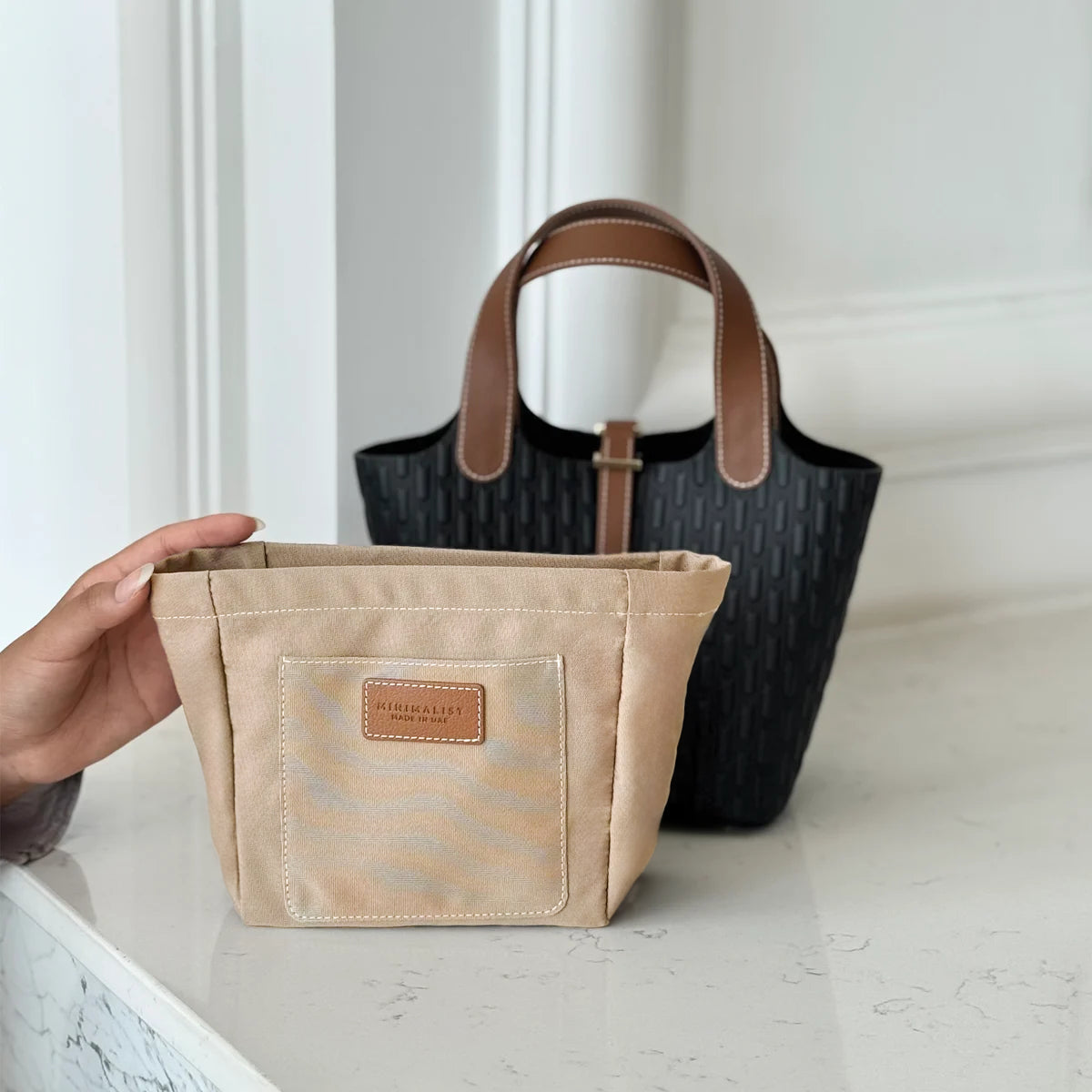 من أيام السفر إلى روتين العمل اليومي، يضمن منظم الشنطة هذا ترتيب مقتنياتك بدقة وأناقة داخل القسم الداخلي الأنيق. إنه الإضافة الأمثل التي ترتقي بتنظيم شنطتك العملية وتضفي عليها مزيداً من الكفاءة والعملية.