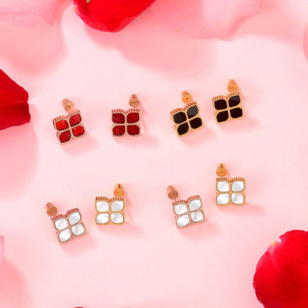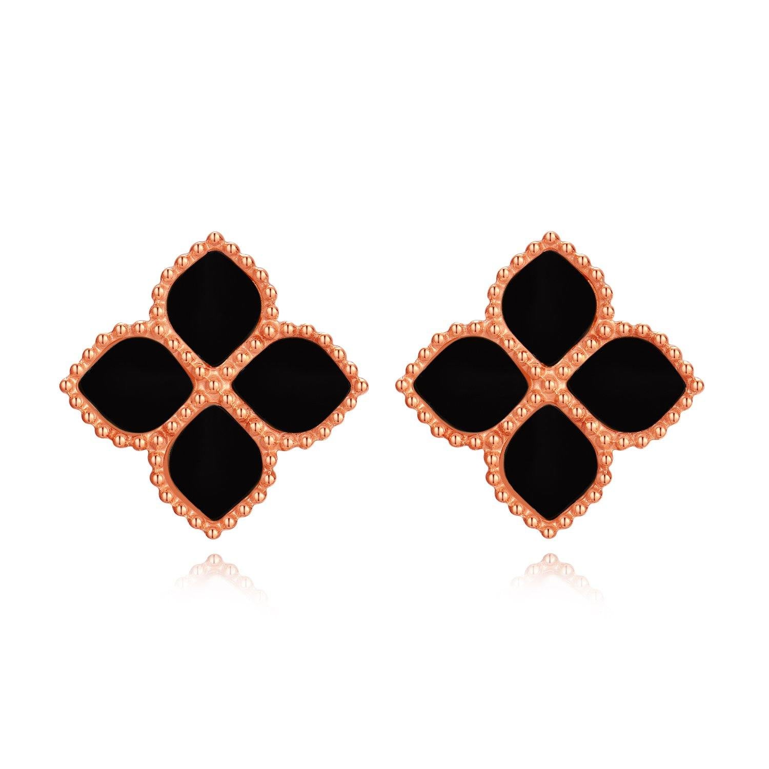 جوري / أقراط الحجر الأسود بلون الروز قولد
