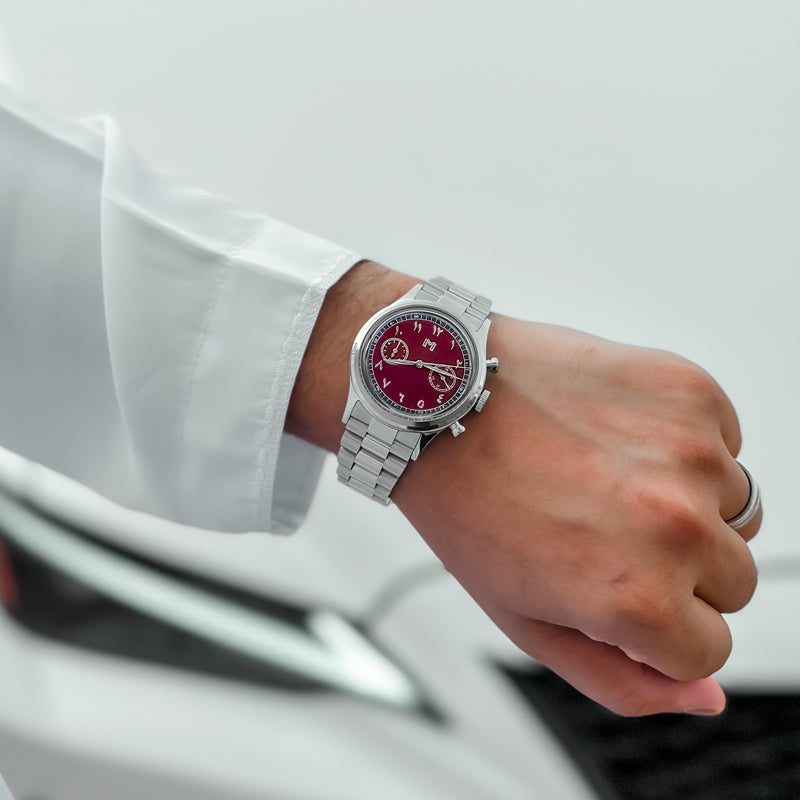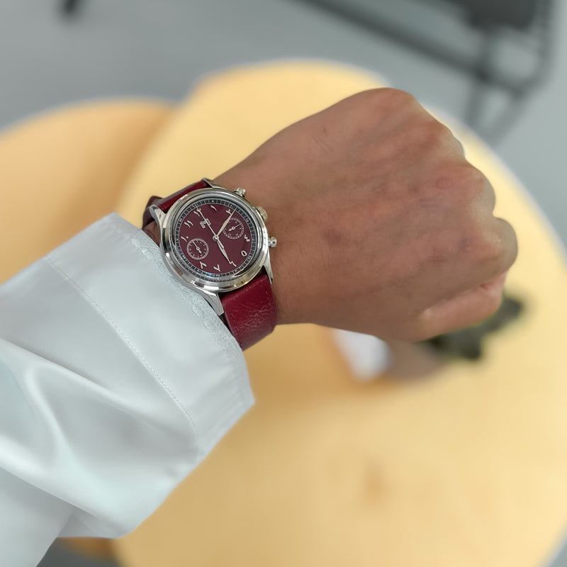 A vintage-inspired chronograph watch featuring a mecha-quartz movement, interchangeable leather and steel straps, and a timeless design crafted for all-day comfort.
