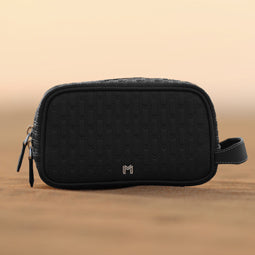 Introducing the Travel Pouch, handmade in UAE in genuine camel leather. This travel pouch is your perfect companion for business ventures or vacations, and can also be used to carry your essentials on an every day basis. A double zip closure opens to a spacious compartment with microfiber suede lining. Embossed with our signature M pattern, this pouch is sure to become your go-to companion everyday.