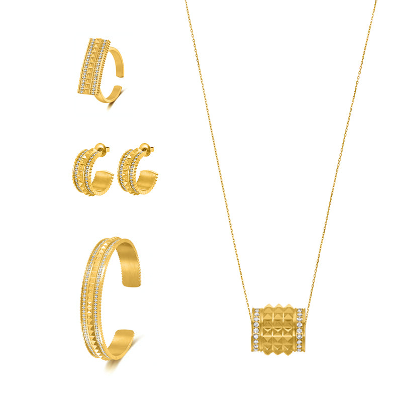 Illuminate your looks this Ramadan with our Shams Collection. Featuring hoop earrings adorned with crystals with a matching necklace and adjustable bangle. A seamless blend of tradition with a modern flair, an exquisite gift for Ramadan & Eid.