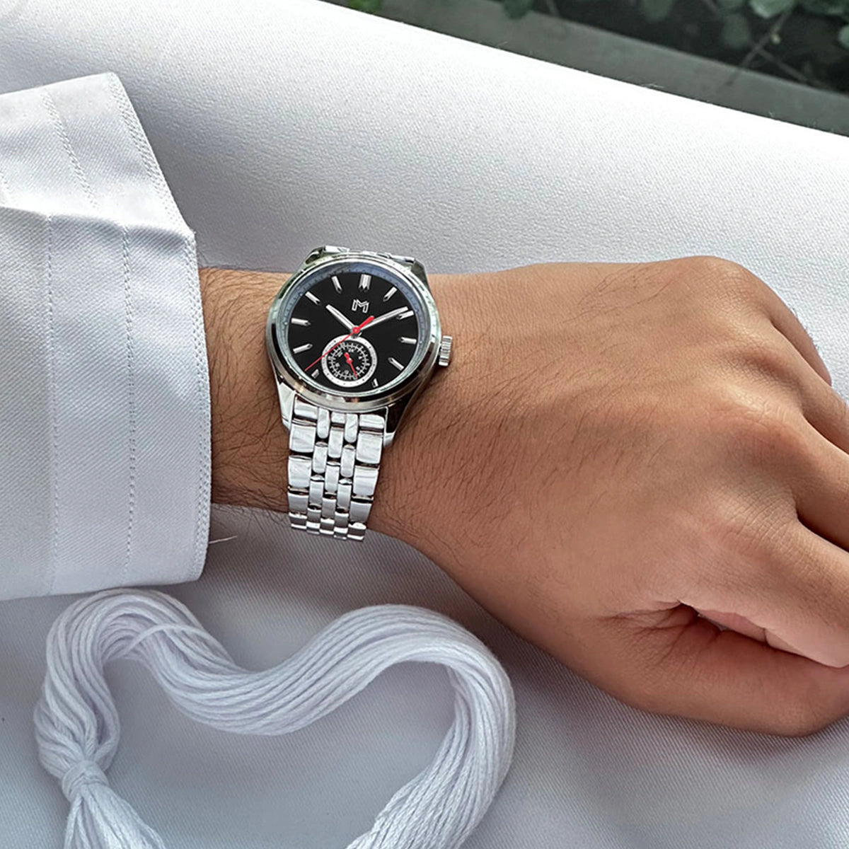 The Element Collection is a perfect blend of simplicity and functionality, featuring a matte dial, minimalist index markers, and a bold red seconds hand for a modern touch. Its single subdial adds practicality to a sleek design, making it the ideal everyday companion for any occasion.
