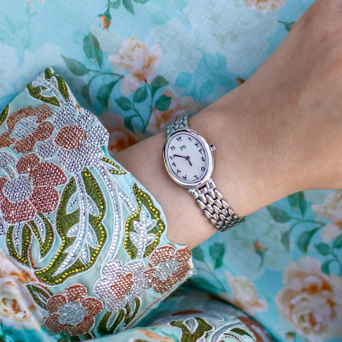 Designed for daily wear, this watch features a sleek oval case and polished links that move naturally with your wrist, offering a lightweight feel and effortless sophistication.