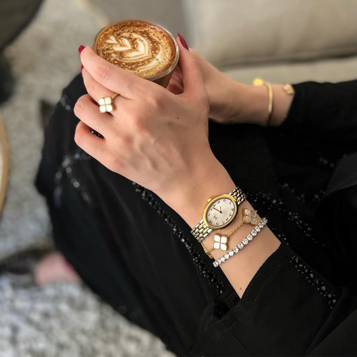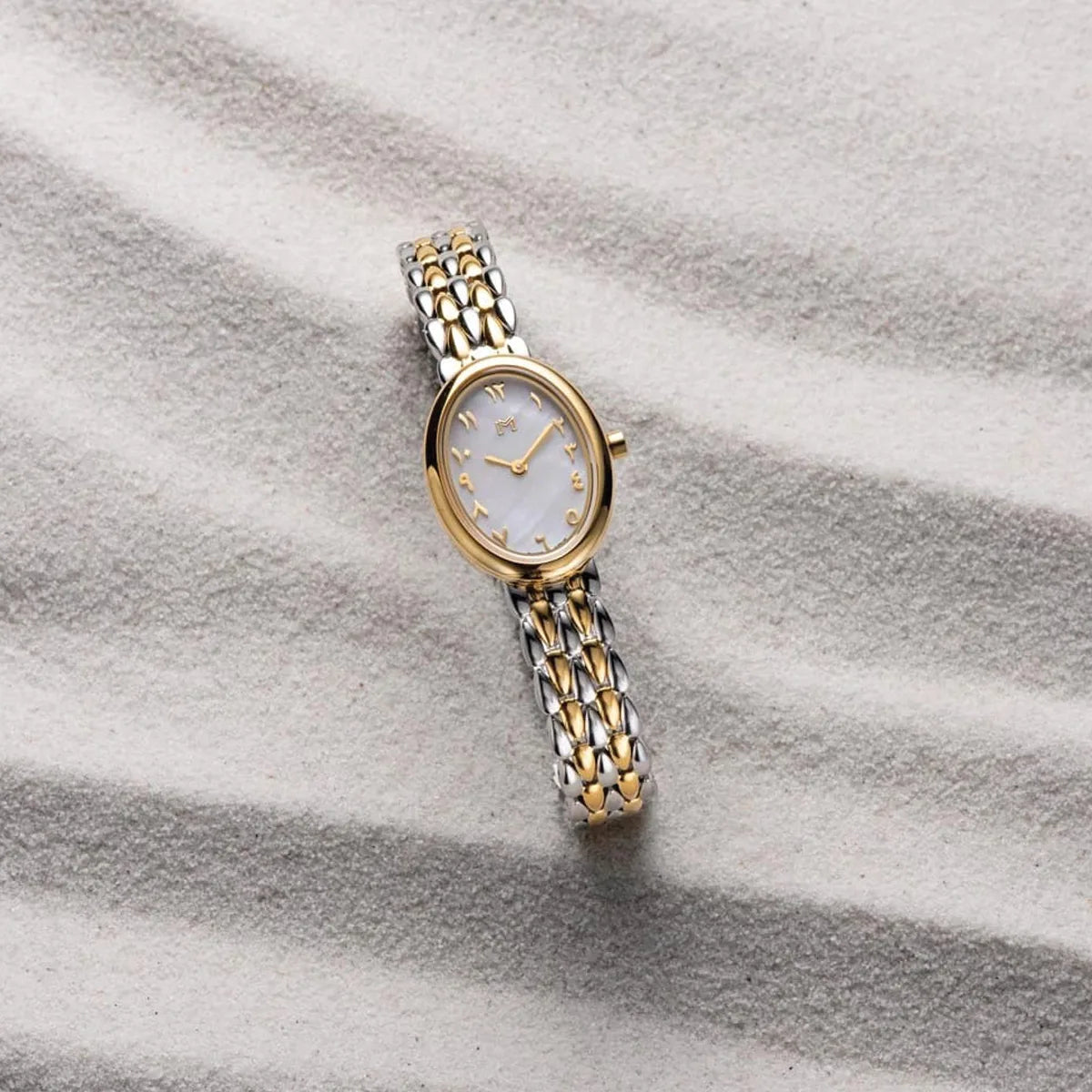 Designed for daily wear, this watch features a sleek oval case and polished links that move naturally with your wrist, offering a lightweight feel and effortless sophistication.