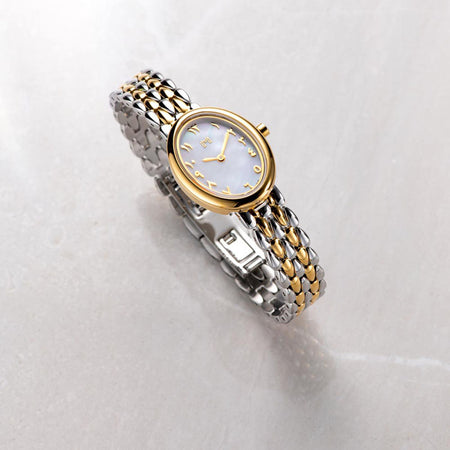 Designed for daily wear, this watch features a sleek oval case and polished links that move naturally with your wrist, offering a lightweight feel and effortless sophistication.