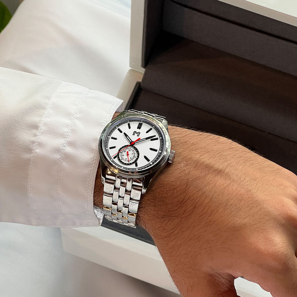 Our watches are crafted from premium stainless steel with sapphire crystal glass for scratch resistance and durability.