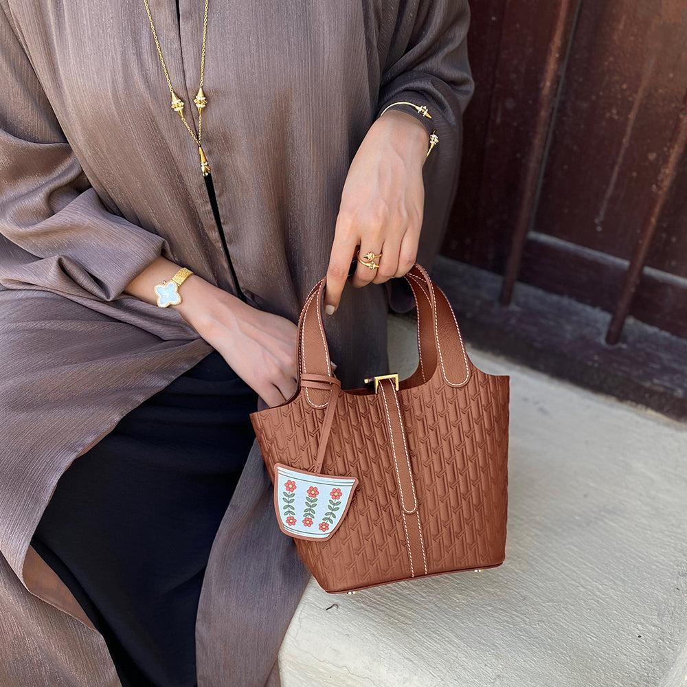 Each charm is carefully handmade in the UAE using premium camel leather, valued for its unique texture and natural durability. Finished with a double-sided print, these pieces are full of personality and crafted to last.