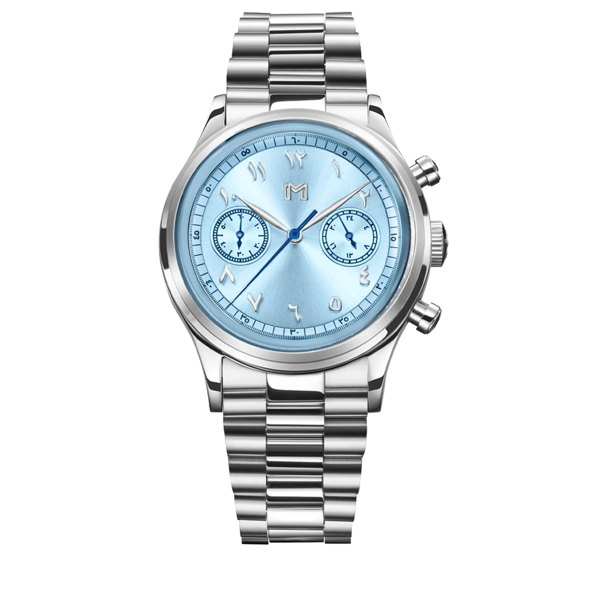 A vintage-inspired chronograph watch featuring a mecha-quartz movement, interchangeable leather and steel straps, and a timeless design crafted for all-day comfort.
