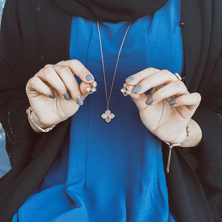 The Joory Collection draws inspiration from the timeless beauty of roses, featuring delicate floral motifs framed by beaded detailing. Thoughtfully designed with two-sided stones and feminine finishes, each piece offers a soft, luminous touch - perfect for adding refined elegance to both everyday moments and special occasions.
